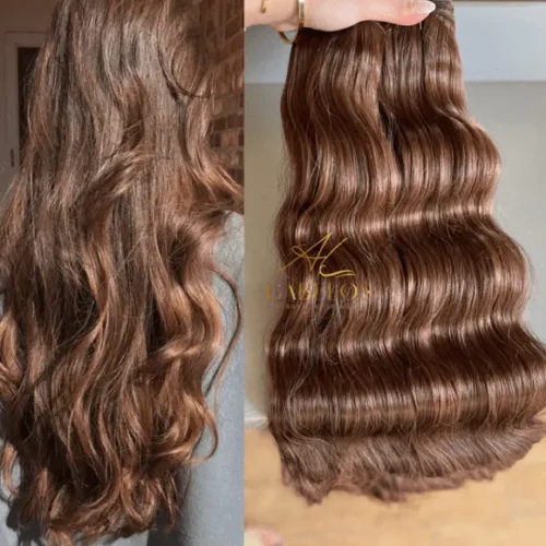 Cabelos Telado/Tecido Castanho Escuro Ondulado Fibra Russa 200g 60cm
