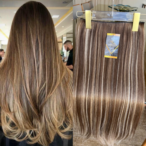 Em até 3x de R$ 36,67 sem juros Kit Mega Hair 4 Telinhas TIC-TAC Loiro Mechado Liso Bio Luxo Prime.