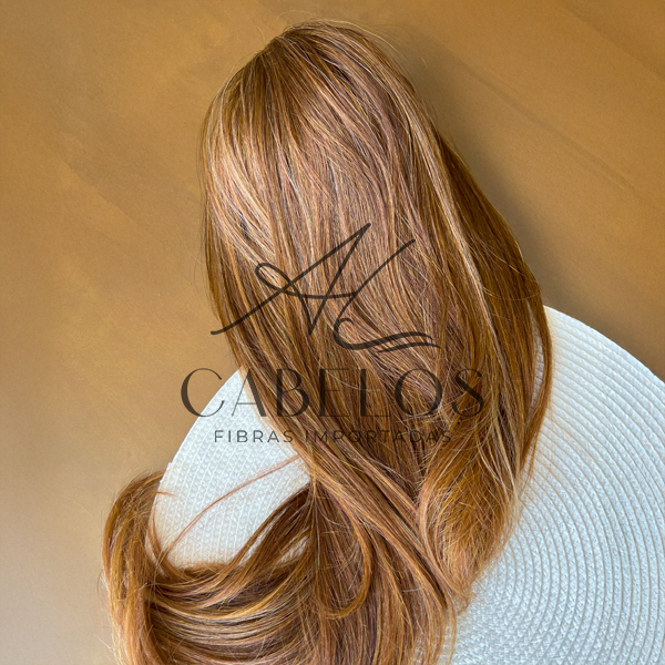 Aplique Rabo de Cavalo Ary Castanho Claro 60cm 140g Fibra Europeia.