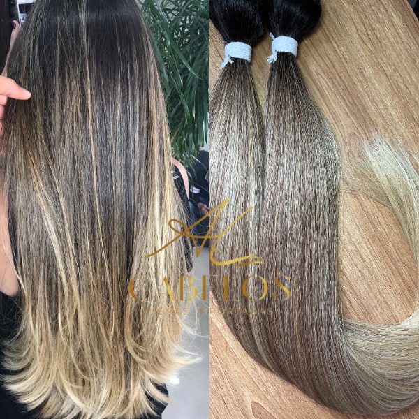 Cabelo Telado/Tecido Loiro esfumado Liso-TTP-2336 Liso Fibra Russa 70cm 150g