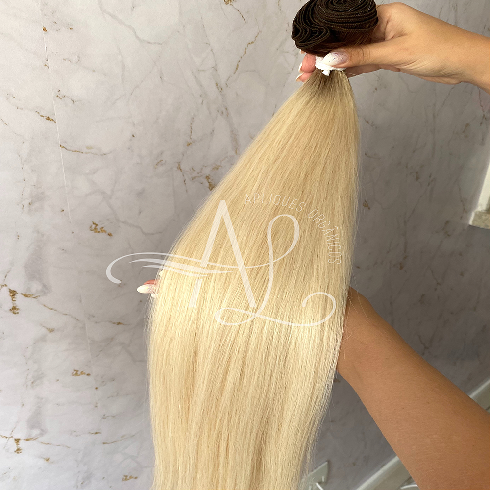 Cabelo Telado/Tecido Loiro Pérola Esfumado Liso Fibra Russa 70cm 150g