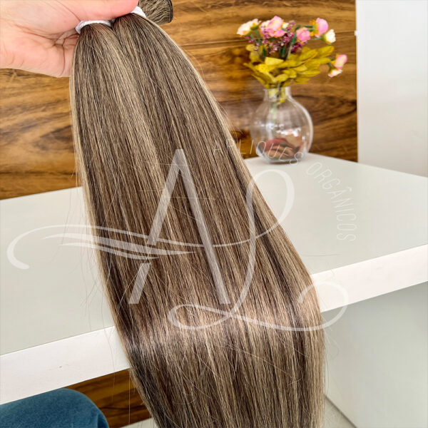 Cabelo Telado/Tecido Morena Iluminada #2 Liso Fibra Russa 70cm 150g