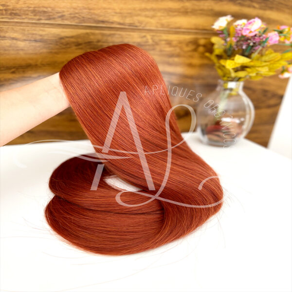 Cabelo Telado/Tecido Ruivo Laranjinha #1 Liso Fibra Russa Ultra Realista 70cm 150g