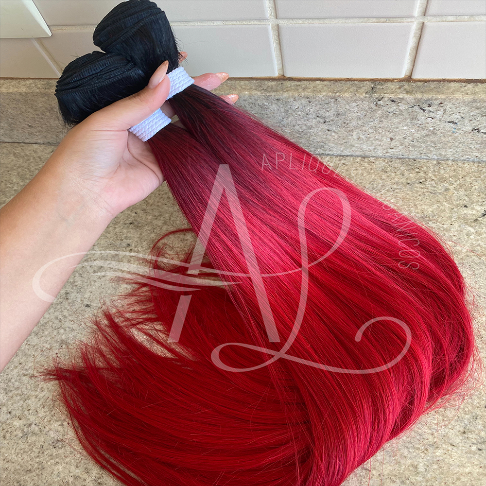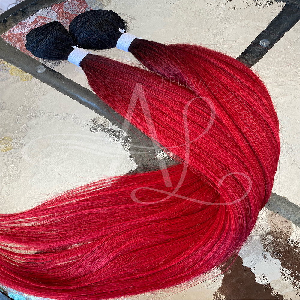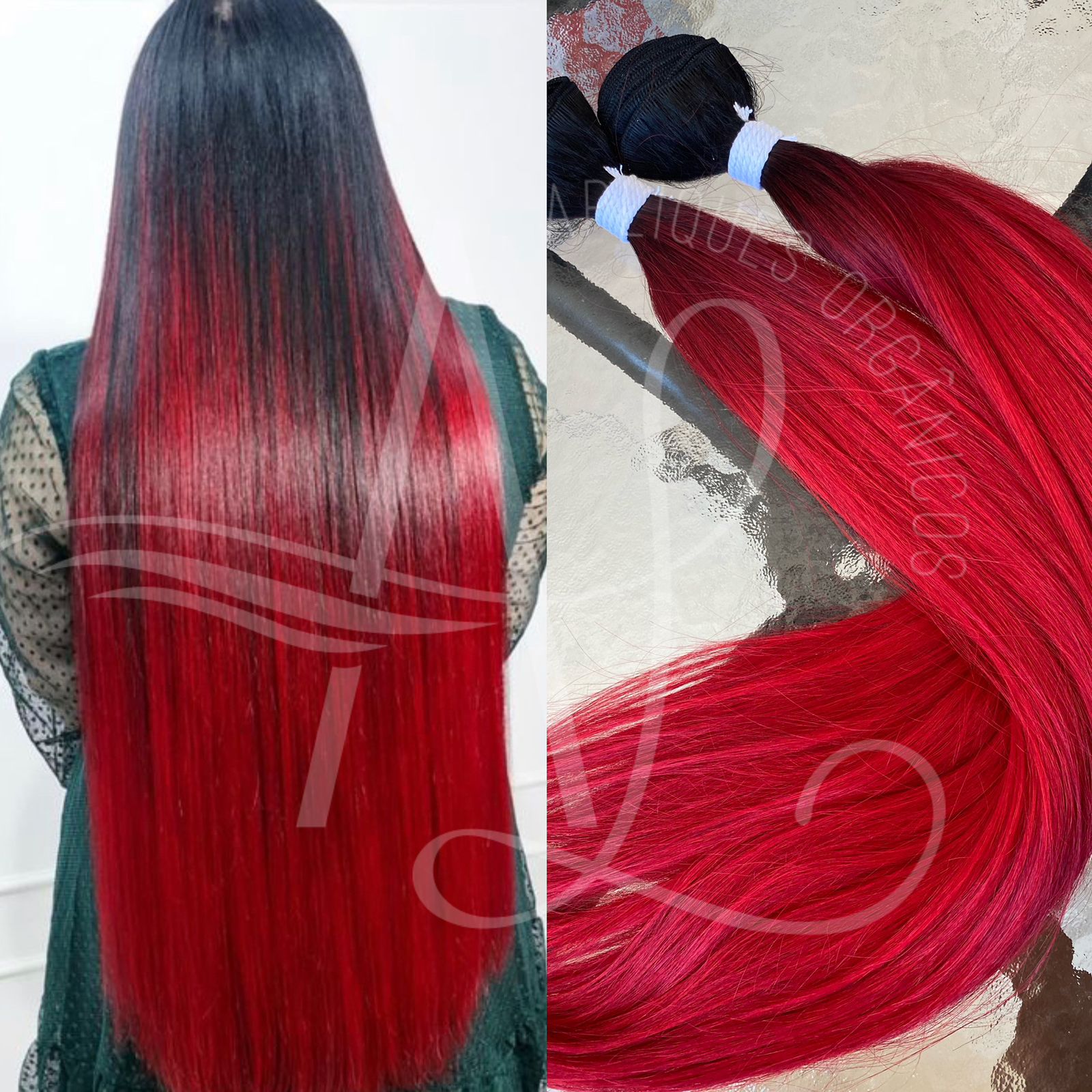Cabelo Telado/Tecido Vermelho Intenso Esfumado Liso Fibra Russa 70cm 150g