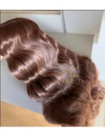 Cabelos Telado/Tecido Castanho Natural Claro Ondulado Fibra Russa 200g 60cm