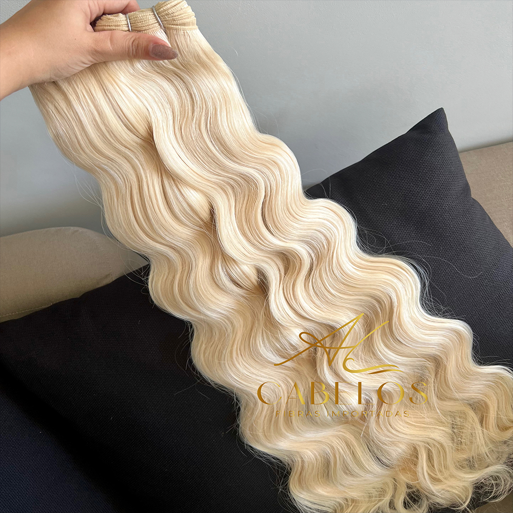 Cabelos Telado/Tecido Loiro Claro Ondulado Fibra Russa 200g 60cm