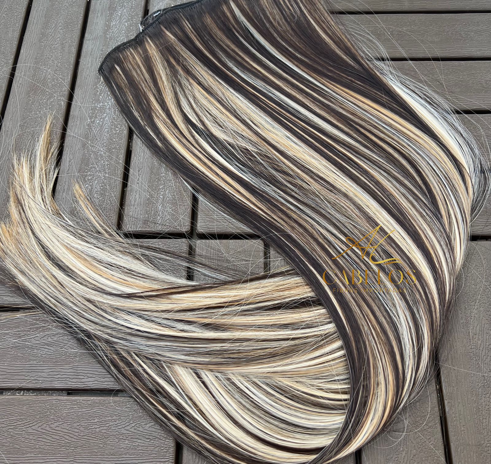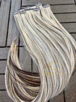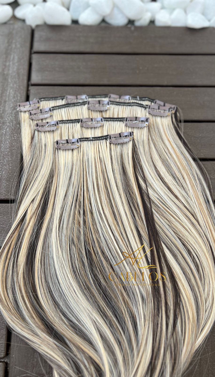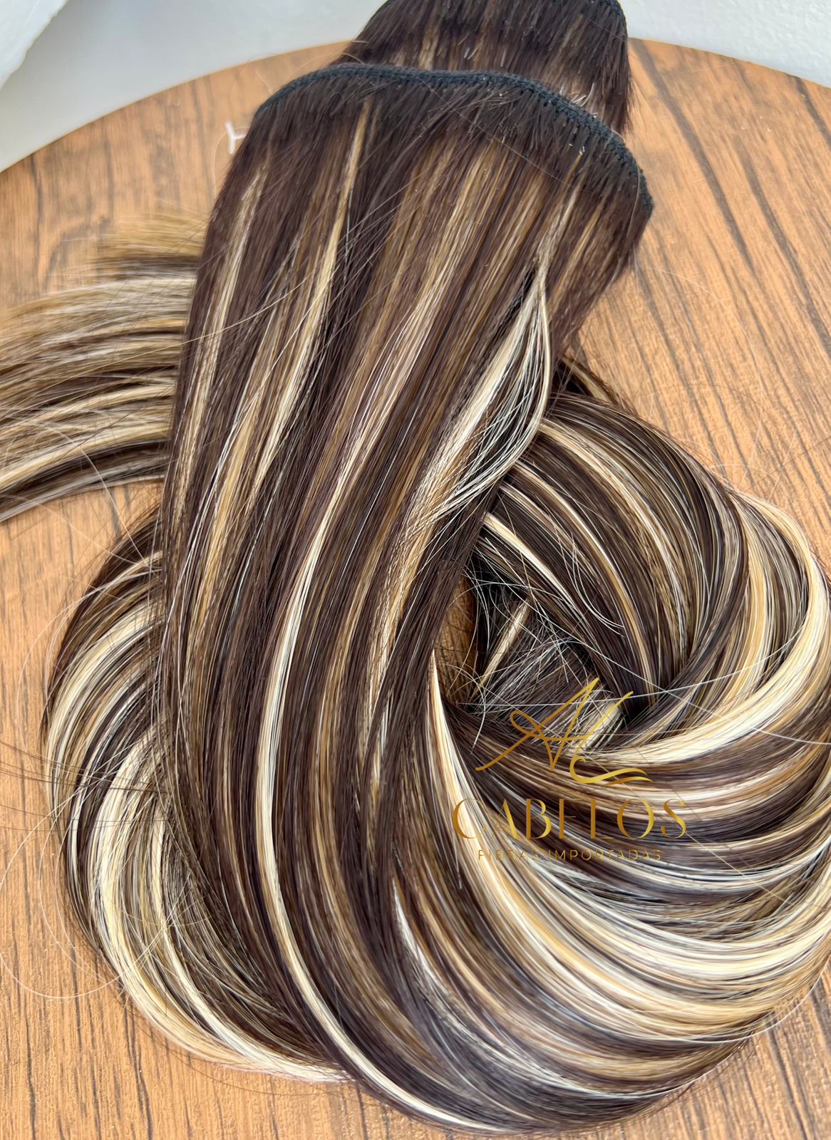 Kit Mega Hair 4 Telinhas TIC-TAC Loiro Mechado Liso Bio Luxo Prime.