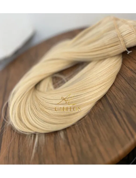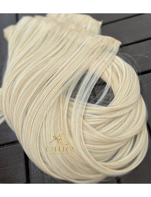 Kit Mega Hair 4 Telinhas TIC-TAC Loiro Pérola Claro Liso Bio Luxo Prime.