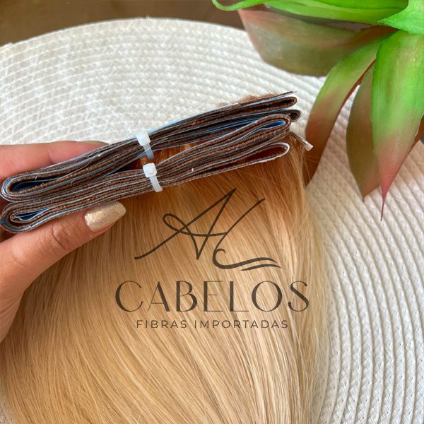 Mega Hair Fita Adesiva Fibra Russa Loiro Pérola Esfumado Claro 70cm Liso.