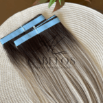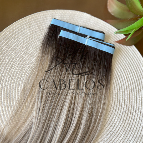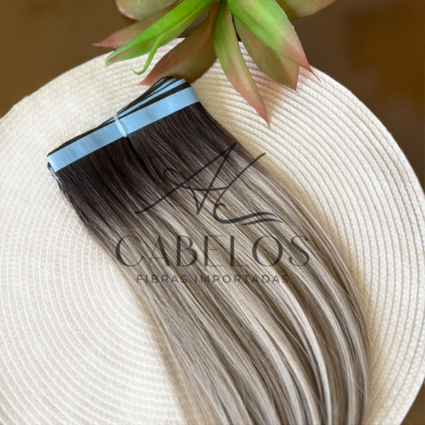 Mega Hair Fita Adesiva Fibra Russa Mesclado Platinado Esfumado 70cm Liso.