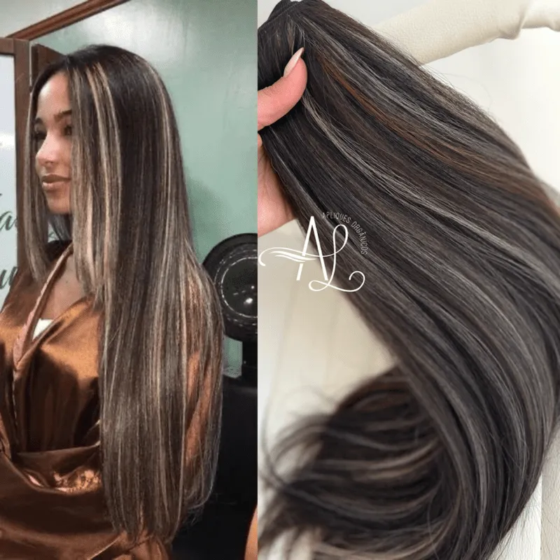 Nossos cabelos pertencem à linha Fibra Ultra Realista, desenvolvida com tecnologia avançada em laboratório. As fibras são importadas, de textura fina e leve, com trama macia e fios menos espessos, garantindo alinhamento, movimento natural