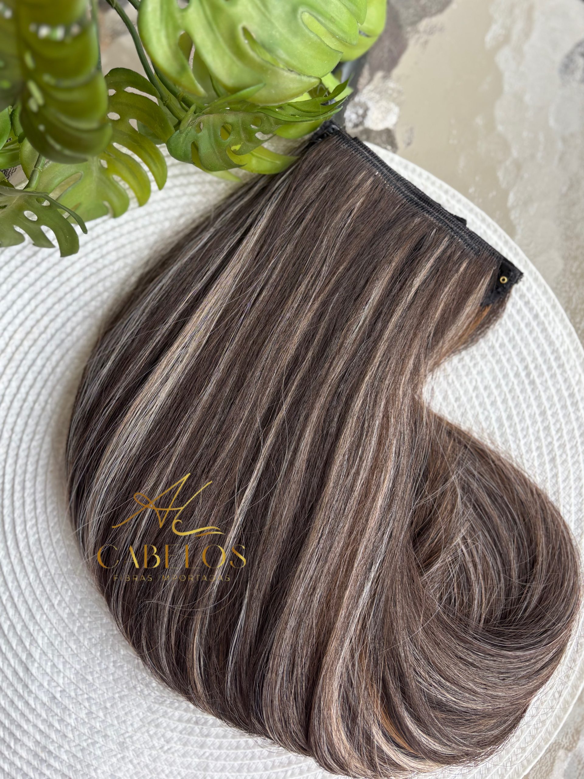 Mega Hair Tic-Tac 4pçs Fibra Russa Liso 60cm 200g, Morena Iluminada (OP427613#)