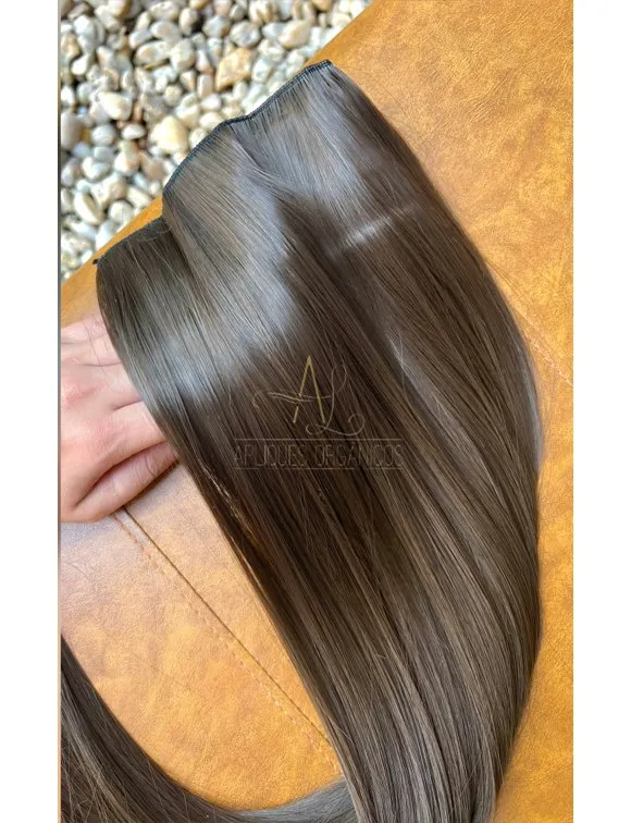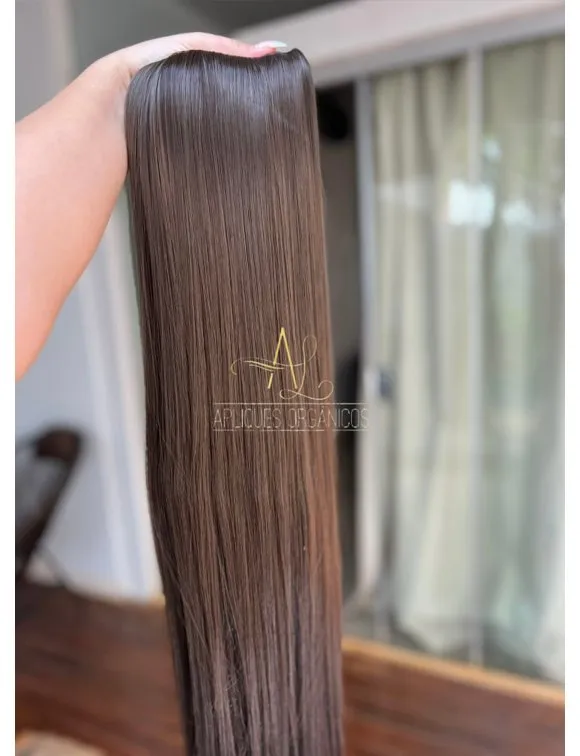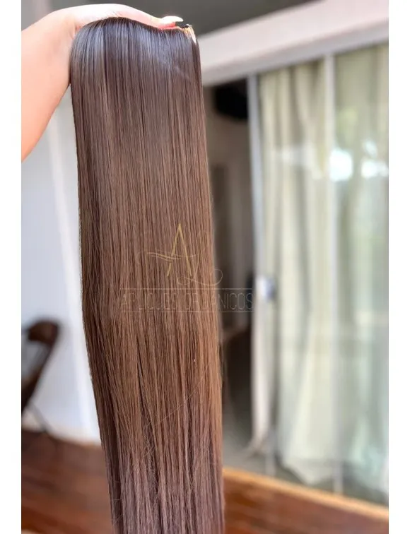 Mega Hair Tic-Tac Castanho Claro Liso Fibra Bio Luxo Prime.