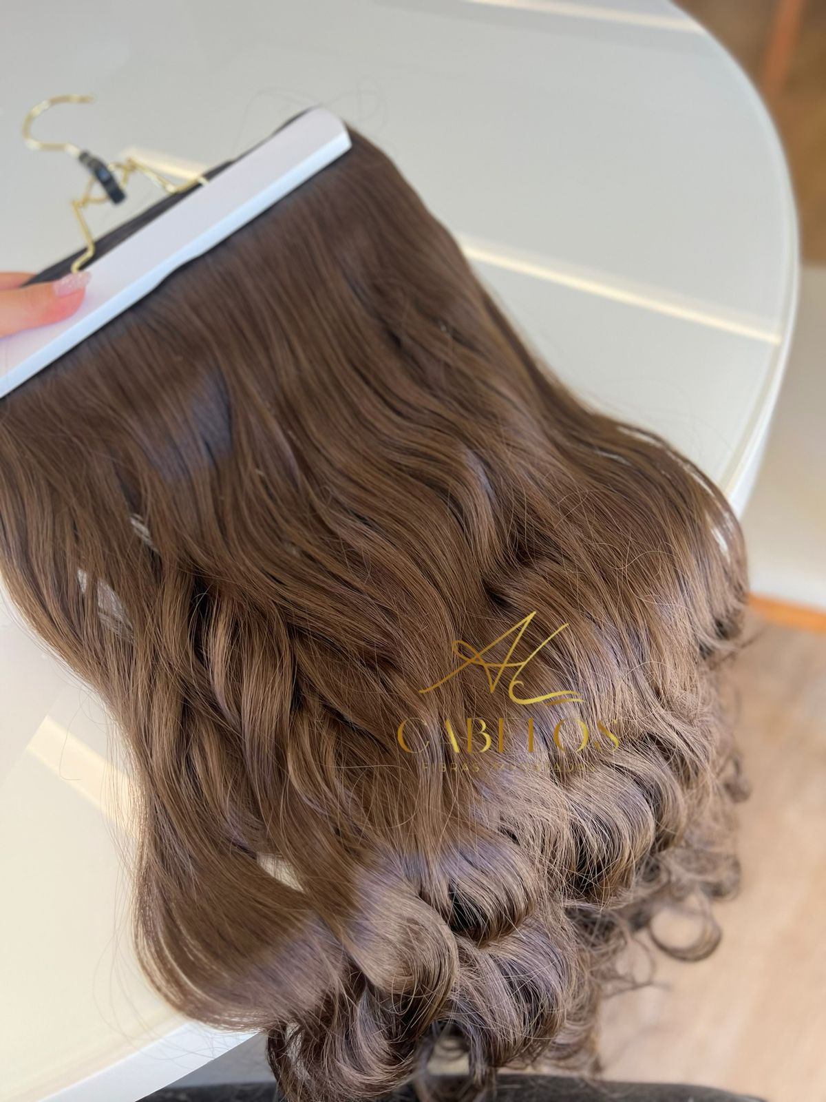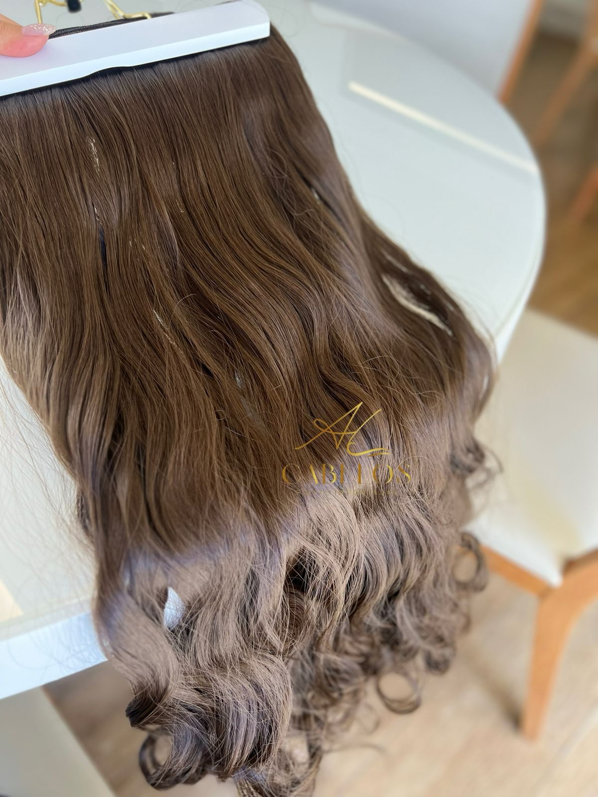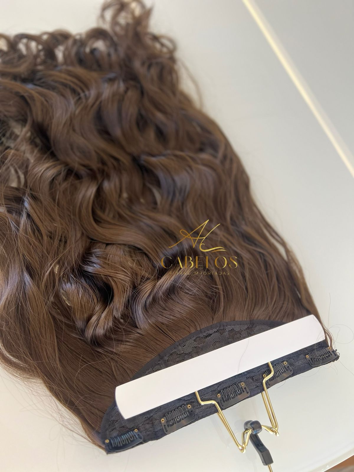 Mega Hair Tic-Tac Castanho Claro Ondulado Fibra Bio Luxo Prime.