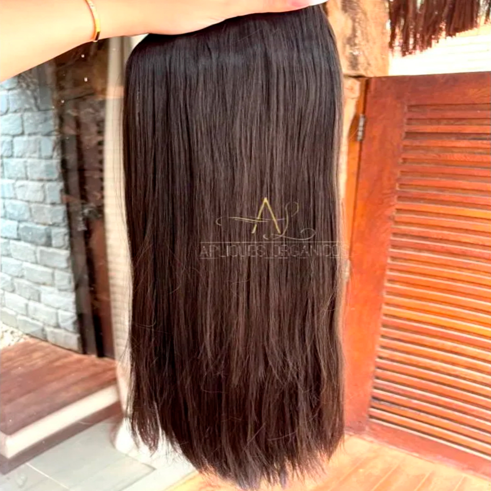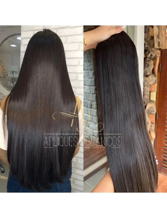 Mega Hair Tic-Tac Castanho escuro Liso Fibra Bio Luxo Prime.