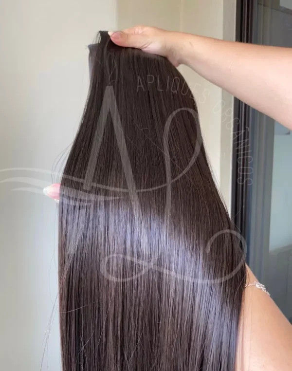Mega Hair Tic-Tac Castanho Medio Liso Fibra Bio Luxo Prime.
