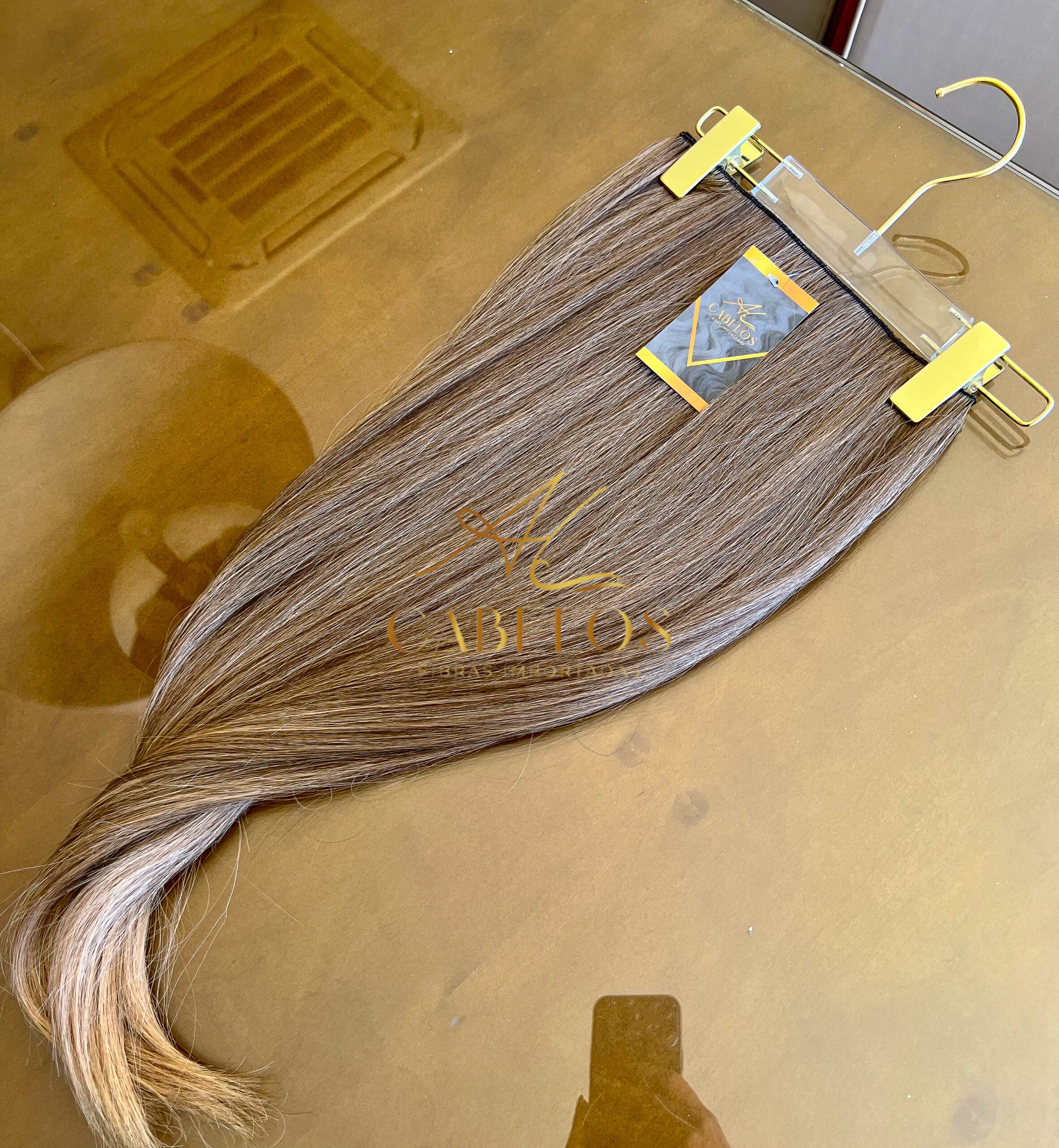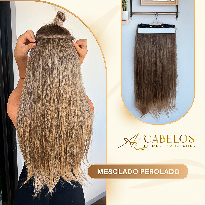 Mega Hair Tic-Tac + Fio Invisible Fibra Russa Cindy 60cm 120g- Mesclado Pérolado