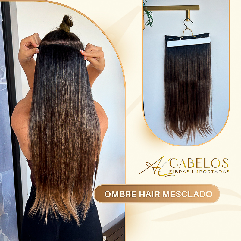 Mega Hair Tic-Tac + Fio Invisible Fibra Russa Cindy 60cm 120g- Ombre Hair Mesclado
