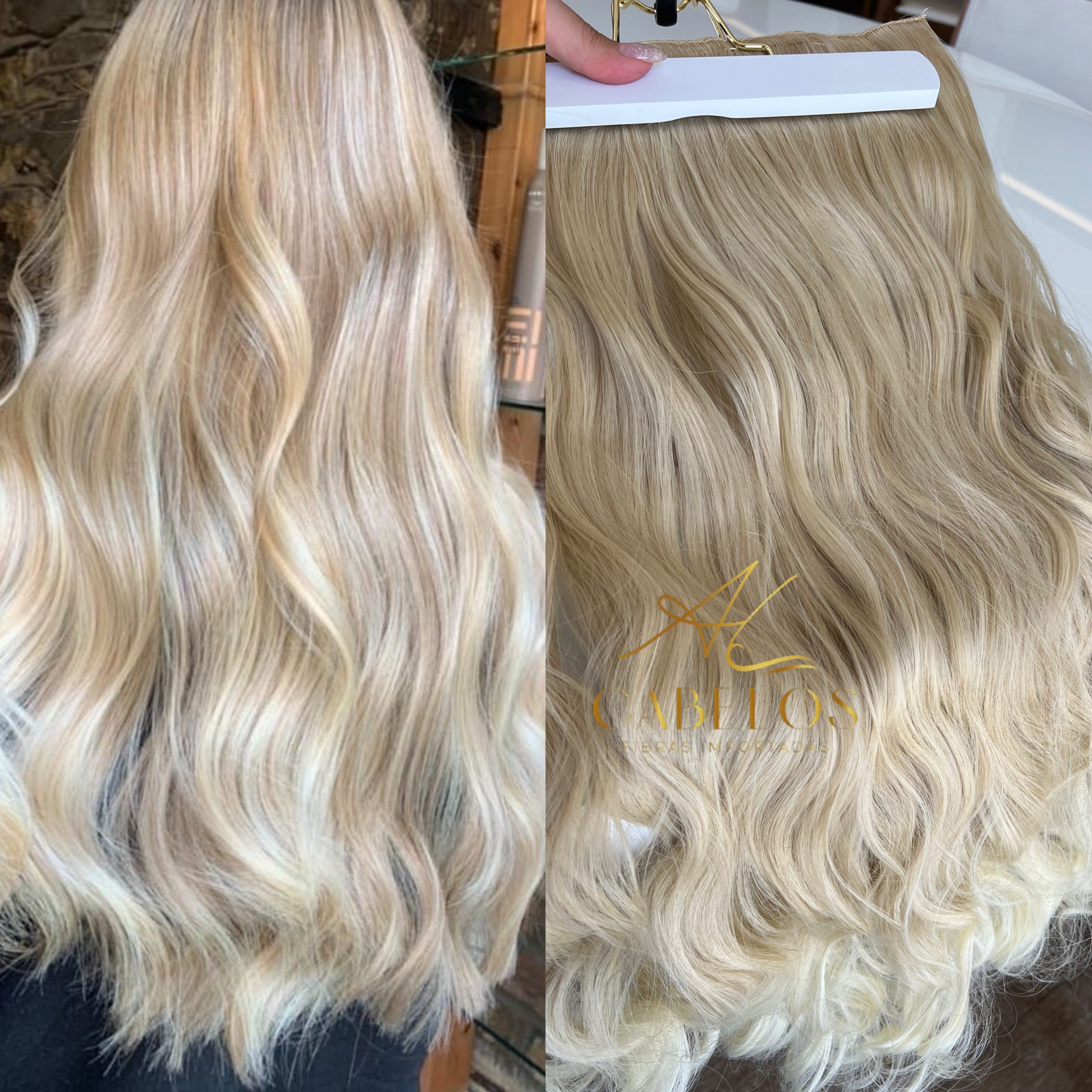 Mega Hair Tic-Tac Loiro Pérola Claro Ondulado Fibra Bio Luxo Prime.