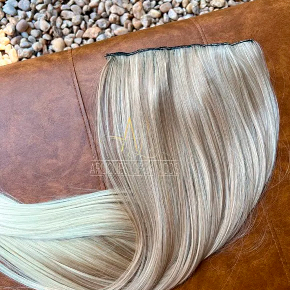 Mega Hair Tic-Tac Loiro Pérola + Pontas Claras Liso Fibra Bio Luxo Prime.