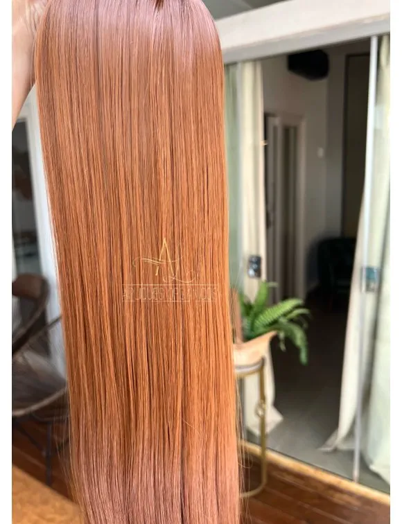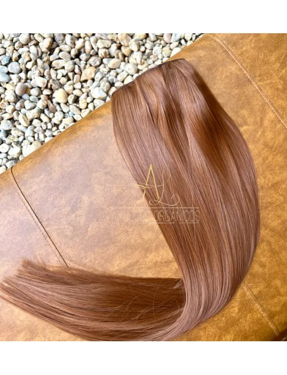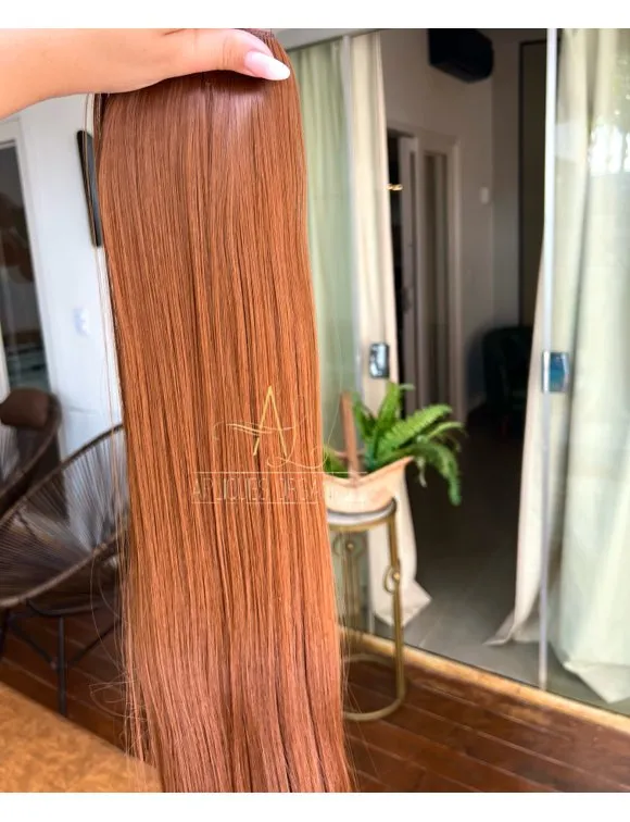 Mega Hair Tic-Tac Ruivo Cobreado Liso Fibra Bio Luxo Prime.