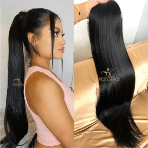 Em até 3x de R$ 56,66 sem juros Aplique Rabo de Cavalo Preto Liso Fibra Russa.