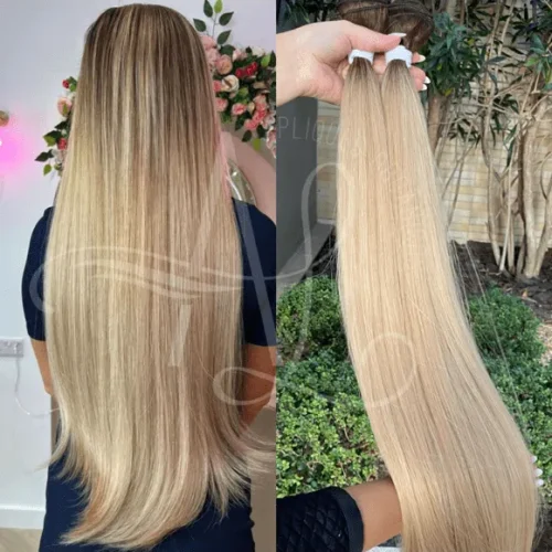 Em até 3x de R$ 53,33 sem juros Kit Mega Hair 4 Telinhas TIC-TAC Loiro Pérola Ombre Hair Liso Bio Luxo Prime.