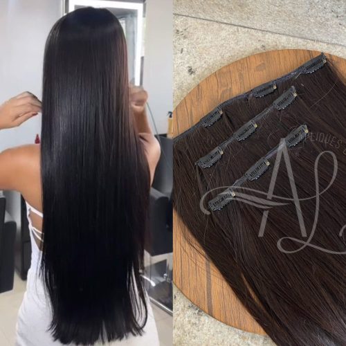 Kit Mega Hair 3 Telinhas TIC-TAC Castanho Escuro Liso Bio Luxo Prime.