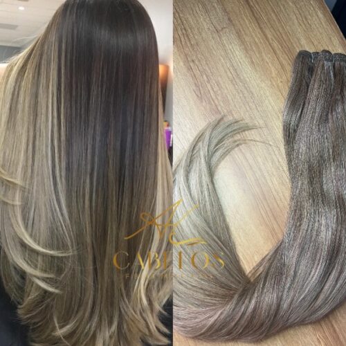 Mega Hair Tic-Tac Loiro Pérola Claro Liso Fibra Bio Luxo Prime.
