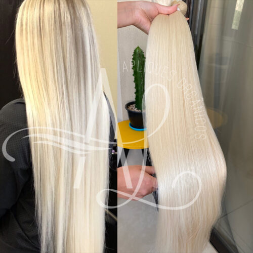 Mega Hair Fita Adesiva Fibra Russa Loiro Pérola Esfumado Claro 70cm Liso.