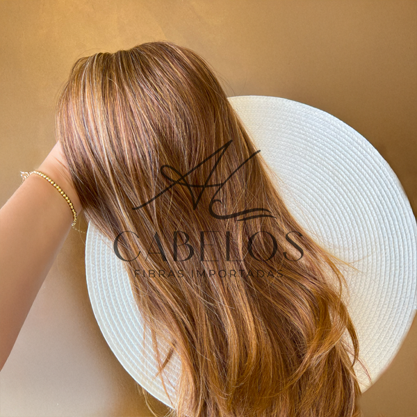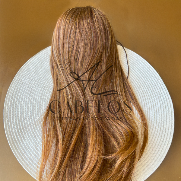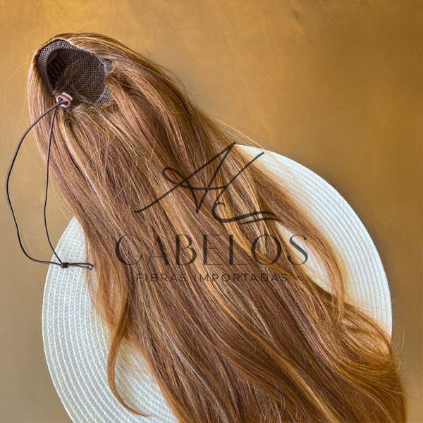 Aplique Rabo de Cavalo Ary Castanho Claro 60cm 140g Fibra Europeia.