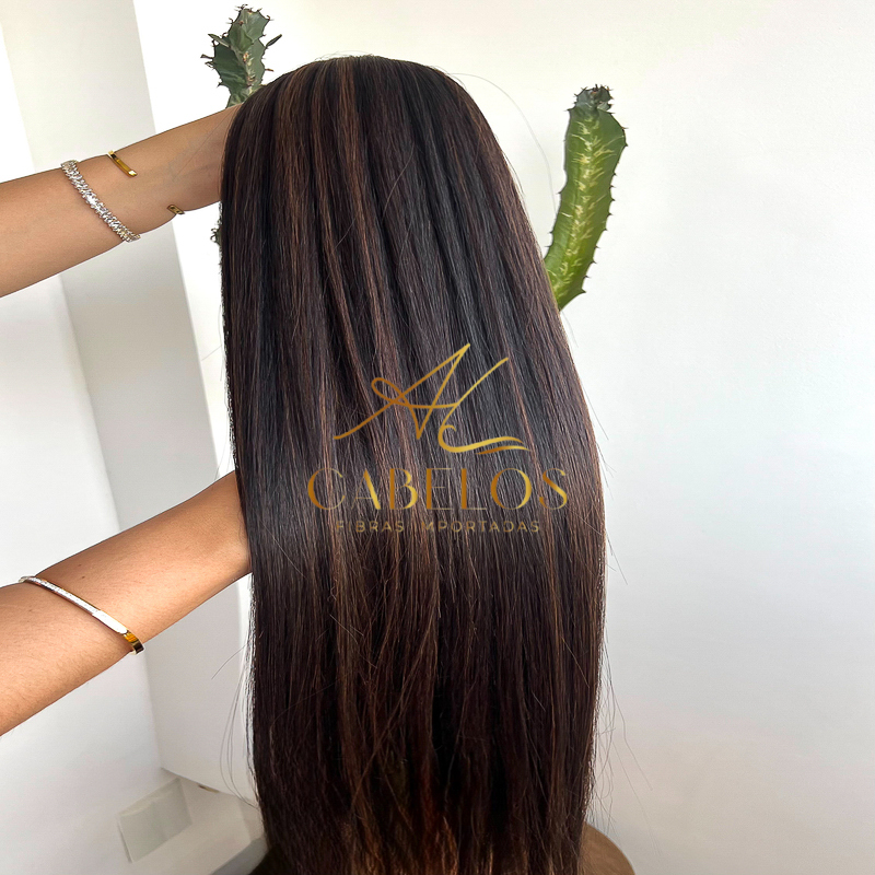 Cabelo Telado/Tecido Fibra Europeia Liso 75cm Morena Iluminada #1