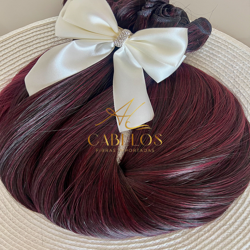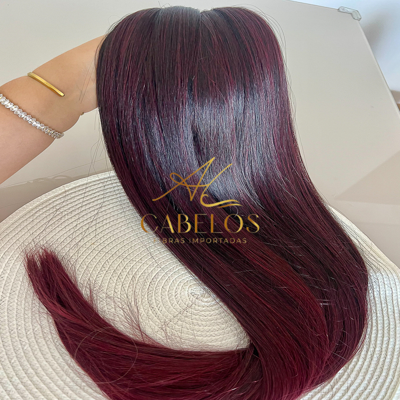 Cabelo Telado/Tecido Fibra Europeia Liso 75cm Vermelho Marsala Mesclado