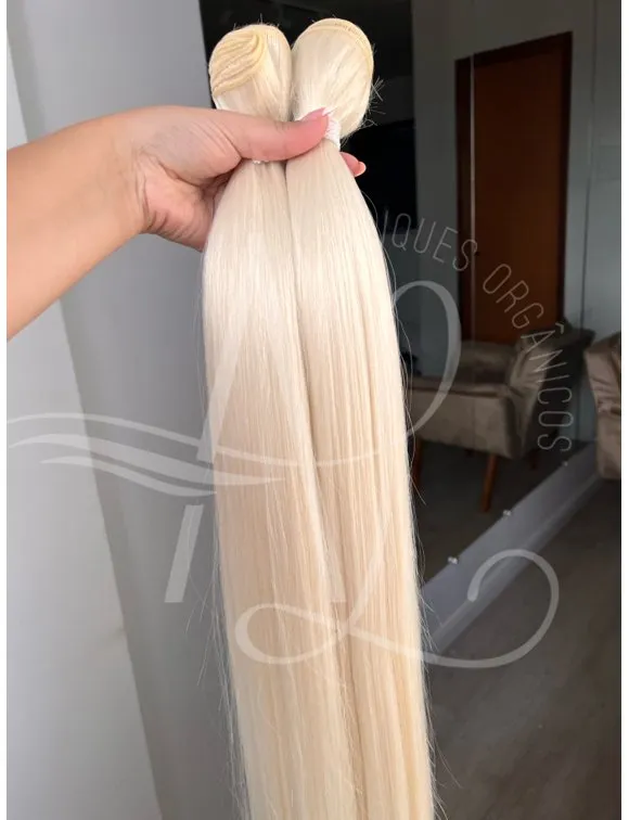 Cabelo Telado/Tecido Loiro Claríssimo Liso Fibra Russa Ultra Realista. 70cm 150g