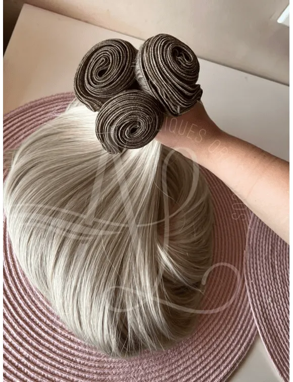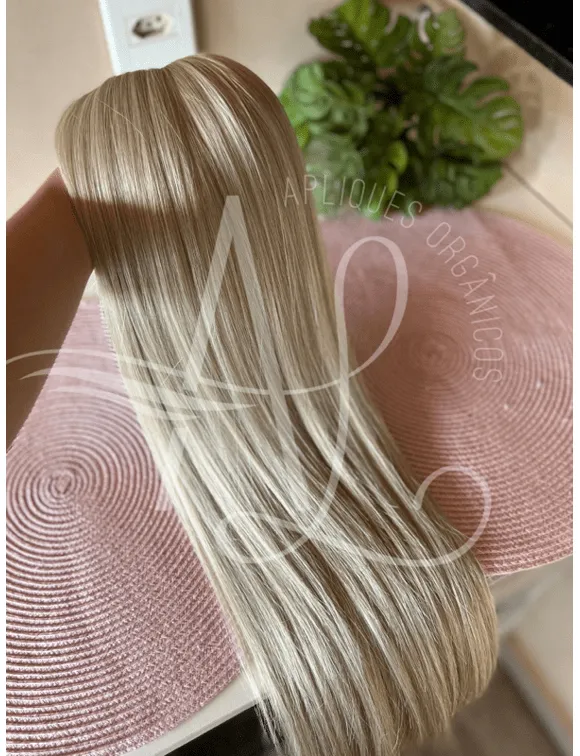 Cabelo Telado/Tecido Loiro Pérola Platinado Liso Fibra Russa Ultra Realista. 70cm 150g