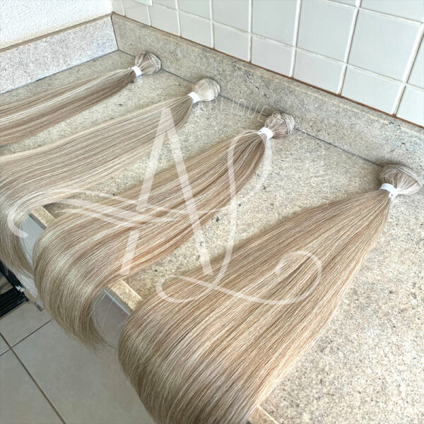 Os cabelos da nossa linha de fibra russa ultra realista são feitos com fibras capilares de alta qualidade. A mais avançada tecnologia capilar disponível. Apresentamos o “HairTech Avançado”, a nova geração de cabelos para mega hair.