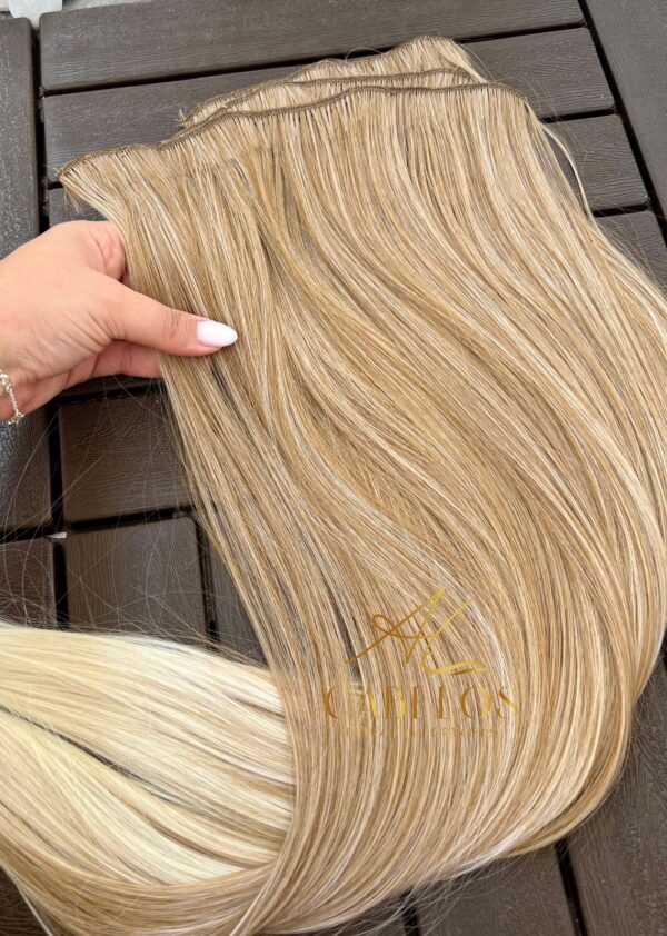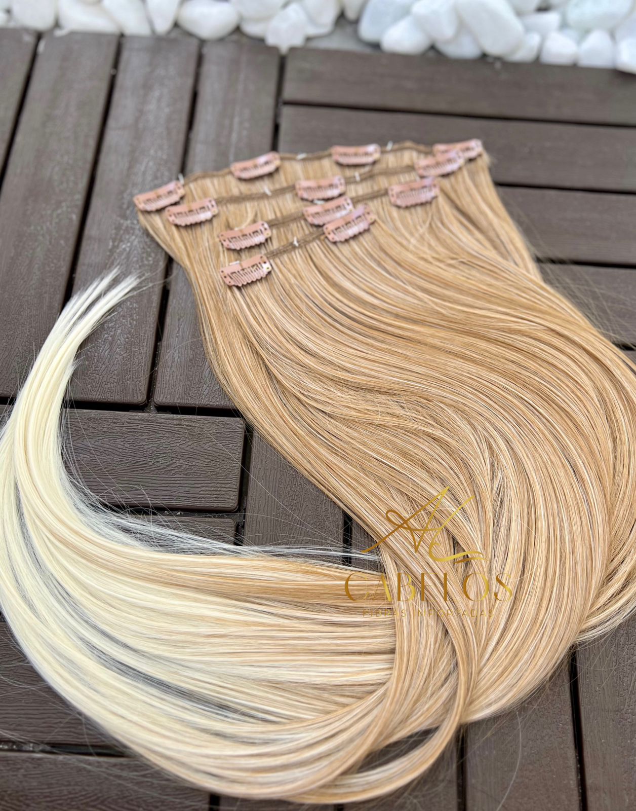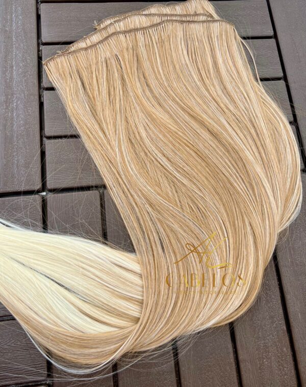 Kit Mega Hair 4 Telinhas TIC-TAC Loiro Pérola Ombre Hair Liso Bio Luxo Prime.