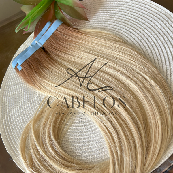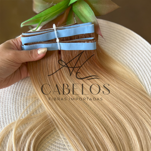 Mega Hair Fita Adesiva Fibra Russa Loiro Pérola Esfumado Claro 70cm Liso.