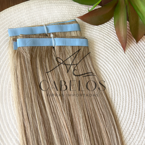 Mega Hair Fita Adesiva Fibra Russa Mesclado Claro 70cm Liso.