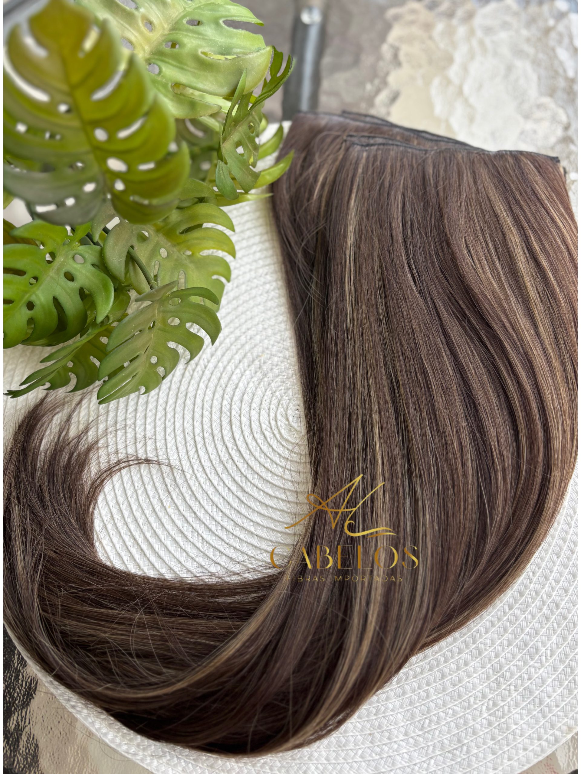 Mega Hair Tic-Tac 4pçs Fibra Russa Liso 60cm 200g, Morena Iluminada (OP427613#)