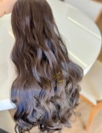 Mega Hair Tic-Tac Castanho Escuro Ondulado Fibra Bio Luxo Prime.