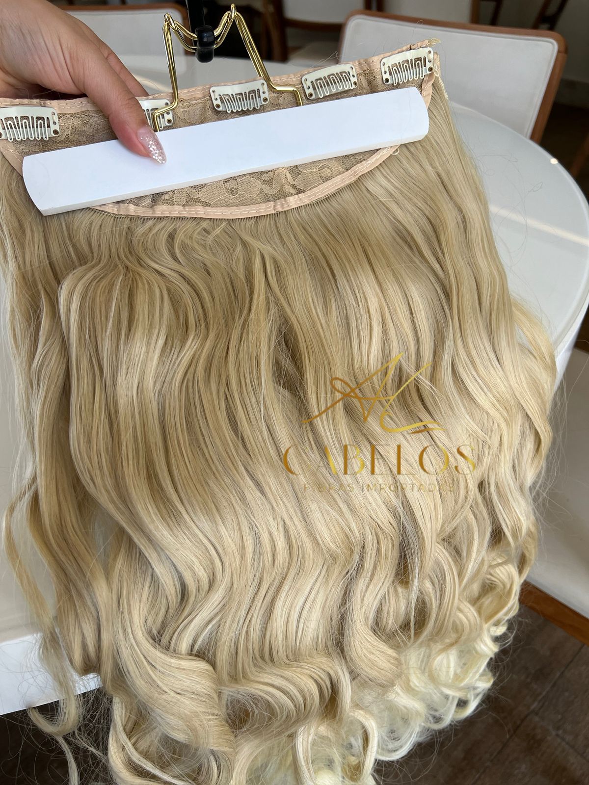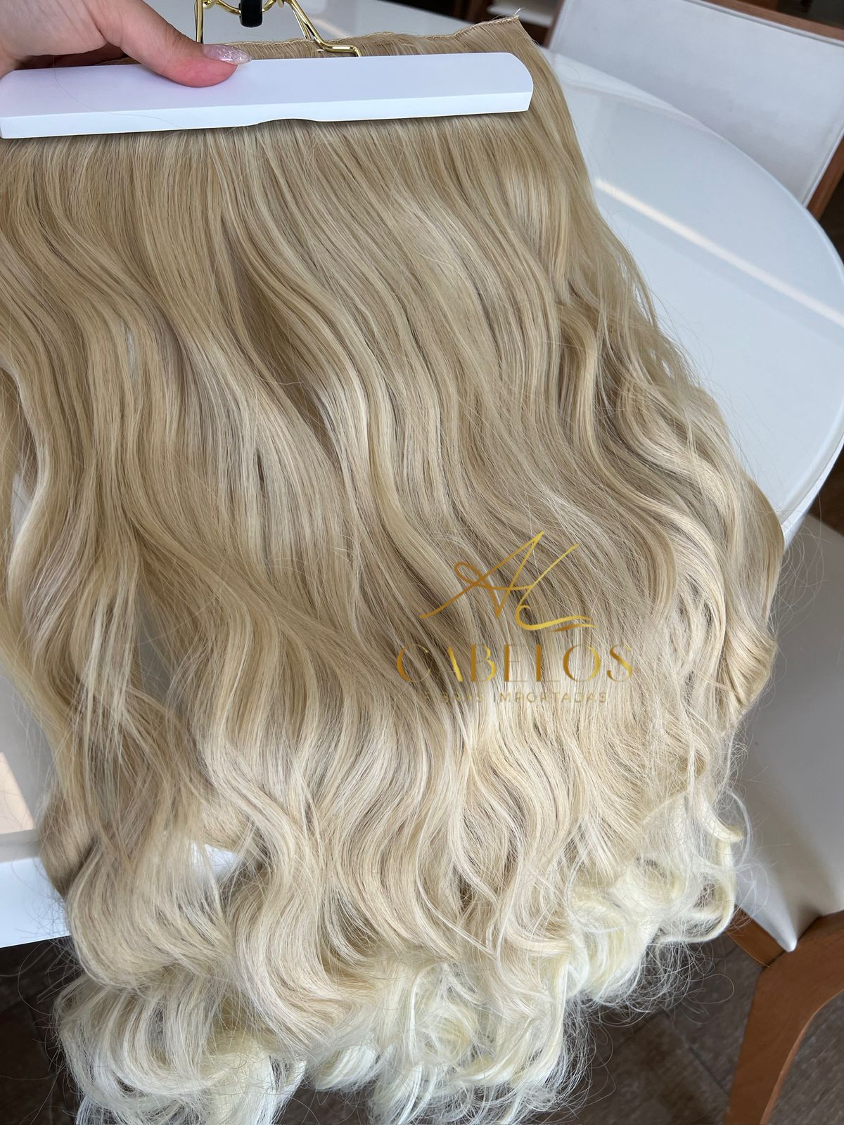 Mega Hair Tic-Tac Loiro Pérola Claro Ondulado Fibra Bio Luxo Prime.