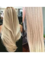 Mega Hair Tic-Tac Loiro Pérola + Pontas Claras Liso Fibra Bio Luxo Prime.