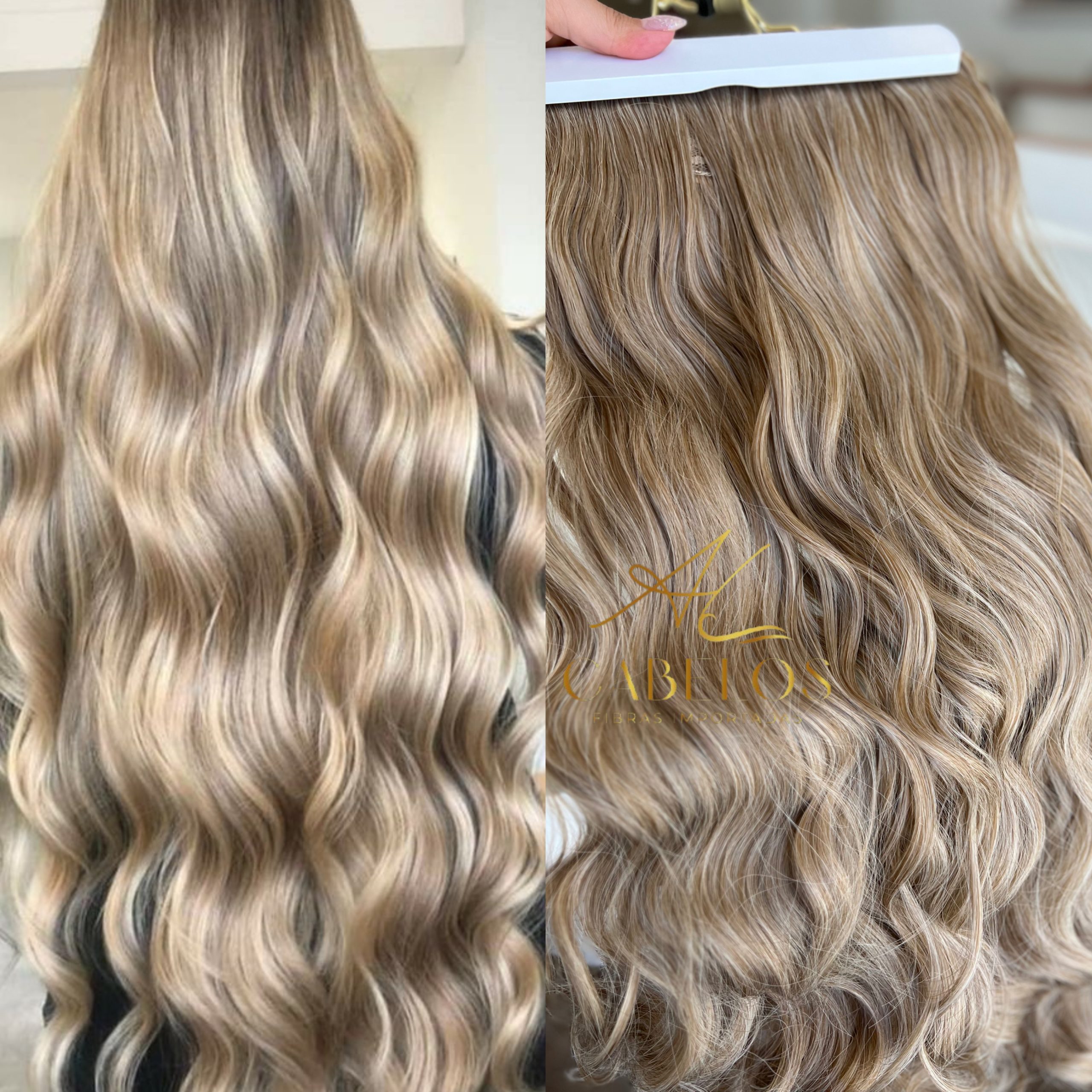 Mega Hair Tic-Tac Mesclado Pérola Ondulado Fibra Bio Luxo Prime.