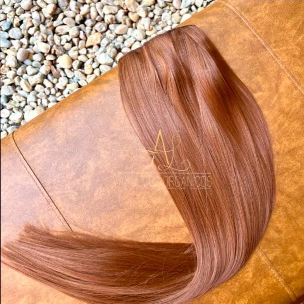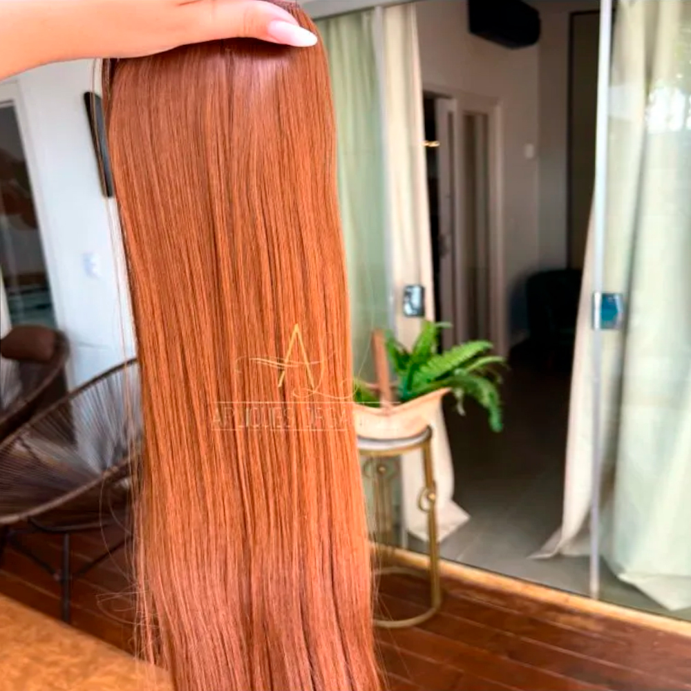 Mega Hair Tic-Tac Ruivo Cobreado Liso Fibra Bio Luxo Prime.