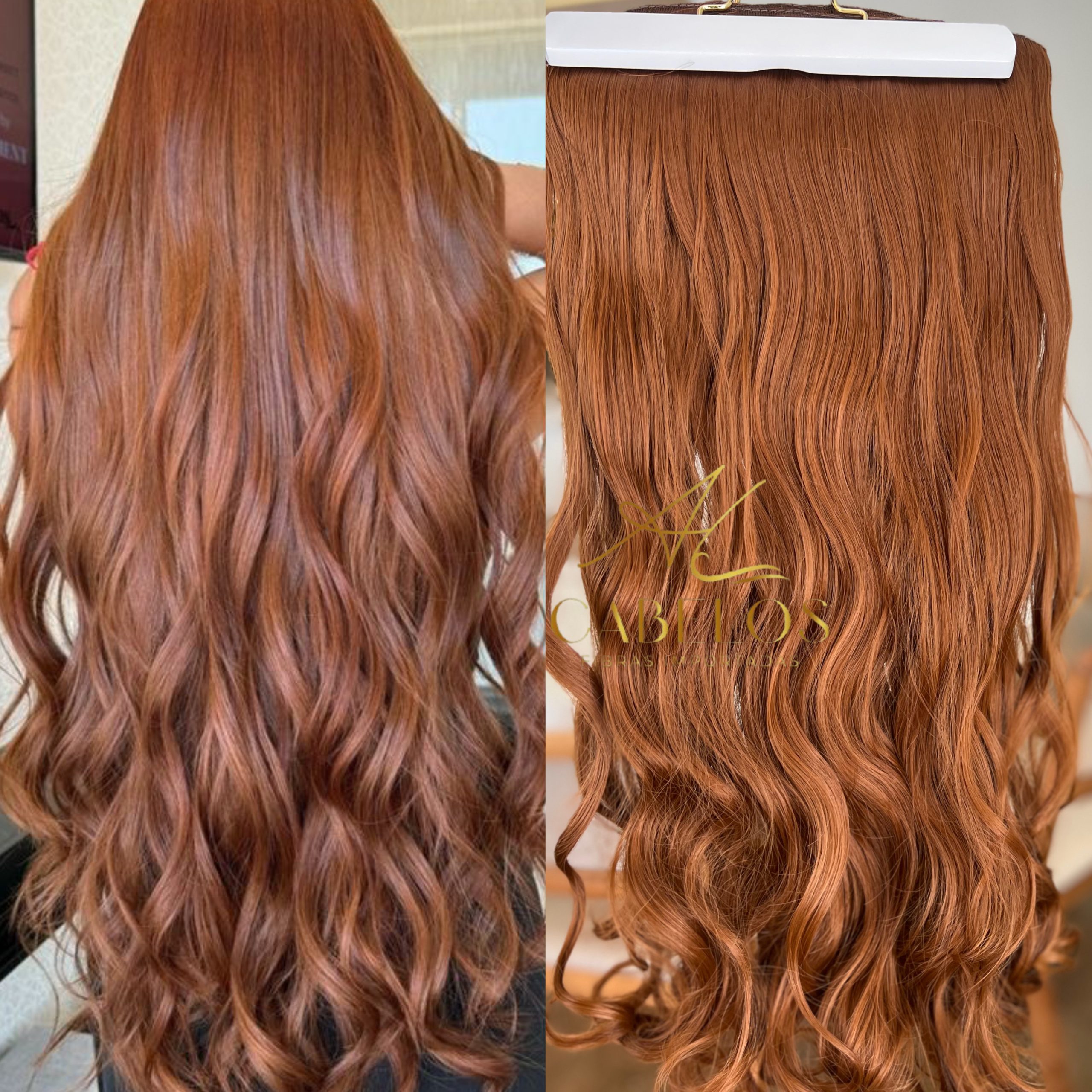 Mega Hair Tic-Tac Ruivo Cobreado Ondulado Fibra Bio Luxo Prime.